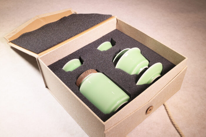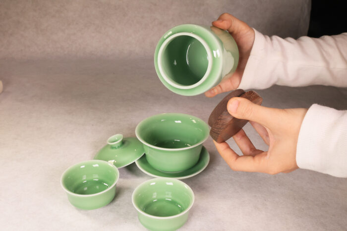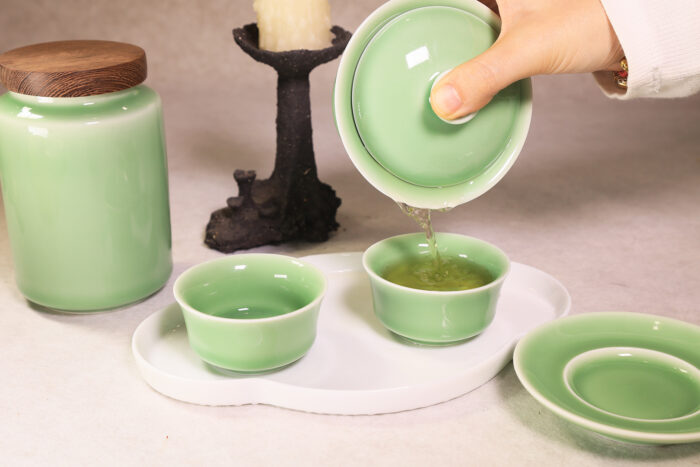 This combination of tea sets combines practicality and artistry. It has the green color of plum and the smooth feel of jade. It is very suitable for personal use or as a gift.