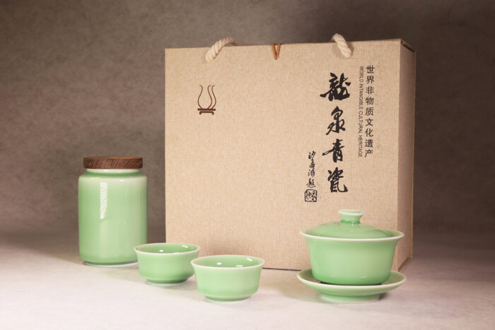 Brand: Ruyuxuan Origin: Longquan, Zhejiang, China Capacity: Gaiwan 150 ml(5.28oz), Tea cup 40ml(1.41oz) Contains: 1 bowl, 1 tea can, 2 tea cups Color: Plum green