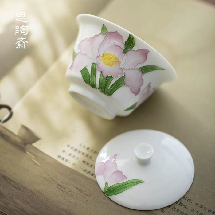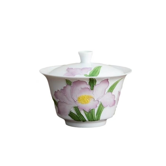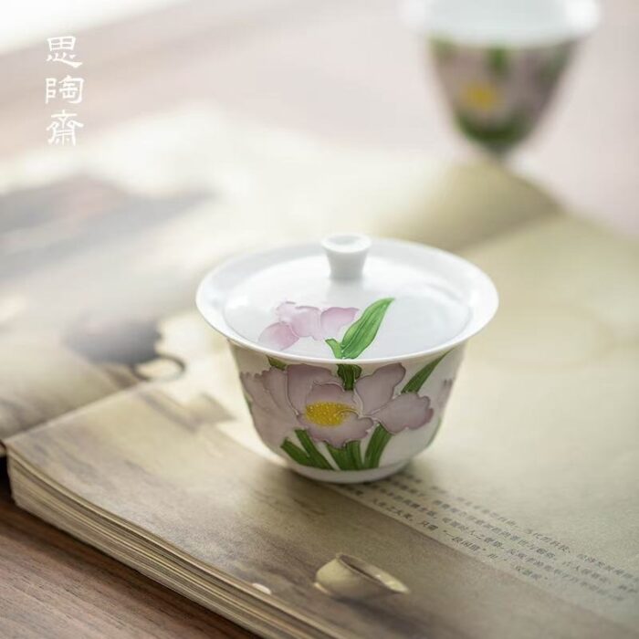 The lid edge and bowl edge of the horseshoe-shaped lid bowl are designed to be spacious, with fast heat dissipation, smooth water discharge, and not easy to burn. It is preferred by beginners. The whole set can be matched with a painted pile of carved iris goblets to complete a set of tea utensils, suitable for sharing and entertaining friends to enjoy together.
