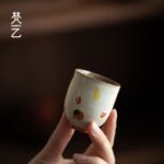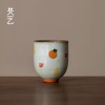 This incredibly adorable coarse pottery persimmon cup features unique hand-painted patterns. The paintings on each cup are vivid and full of artistic charm. Made of coarse pottery material, the cup feels substantial in the hand and exudes a unique rustic charm that is characteristic of coarse pottery. With a capacity of 60 ml, it is just the right size, making it perfect for drinking tea or coffee.