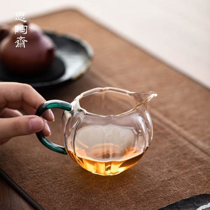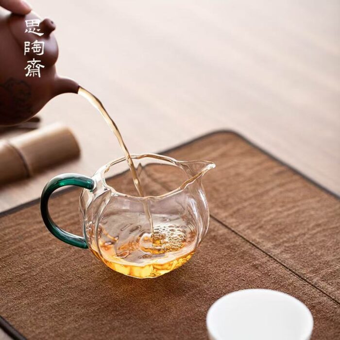 This fair mug is made of high borosilicate glass. It is transparent, pure and heat-resistant, with good fracture resistance, which is convenient for viewing the color of the tea soup. The design of the ear grip is rounded and smooth, and it feels comfortable to the touch, so that you will not get hot when holding it. The mouth of the mug is like an eagle’s beak, and the water comes out smoothly and does not fall out of the cup. It can be matched with a variety of utensils and tea filters, suitable for office and party use, and is the most used style by Chinese tea masters.