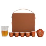 This set of tea utensils is characterized by warm colors, and the tea set storage box is suitable for gatherings and storage. I often take this tea set to a friend's house or picnic to use, it is easy to carry and easy to brew, and it is most suitable for 4 friends to use together.