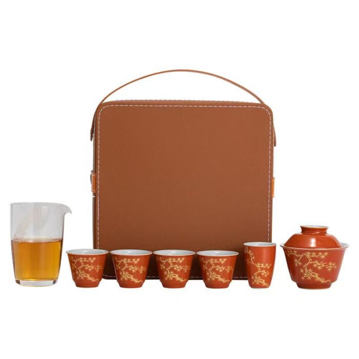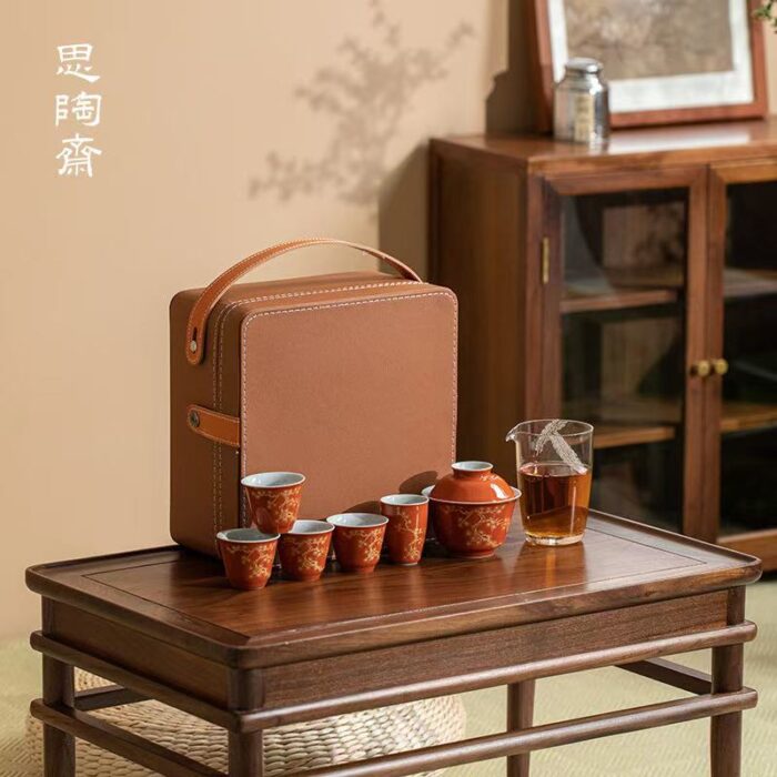 This set of tea utensils is characterized by warm colors, and the tea set storage box is suitable for gatherings and storage. I often take this tea set to a friend's house or picnic to use, it is easy to carry and easy to brew, and it is most suitable for 4 friends to use together.