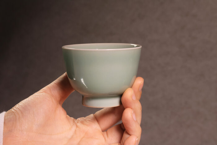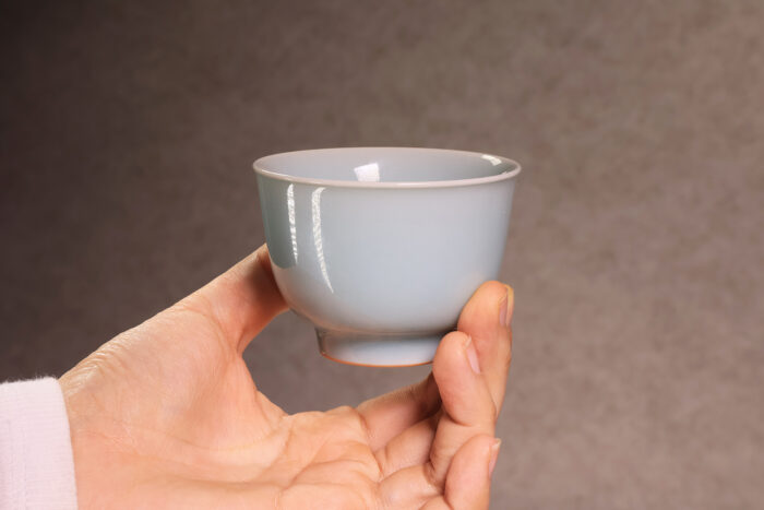 This tea cup is made by Pan Jun, the inheritor of intangible cultural heritage, with traditional hand-drawn embryo skills. He uses the strictest attitude to configure raw materials, high-temperature plain firing and low-temperature glaze firing and other complex traditional techniques, so that the shape of the cup body is natural and perfect. This tire has a thin glaze and a delicate glaze. Under the illumination of different lights, it has the delicacy of jade and the brilliance of mirror reflection. Each handmade is unique.