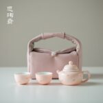 This set of pink sprinkle gold tea sets is the most praised style. Among them is a classic pot, pink in color and dotted with golden spots, which is lively and delicate. The body of the pot is round and lovely, the lid is arched, and the fragrance function is more obvious. The cup is small and smart, and the white inner wall can show the color change of the tea soup. The pouch is fashionable and durable, with a thick inner lining that protects the tea utensils from breakage and is easy to carry when traveling outdoors.