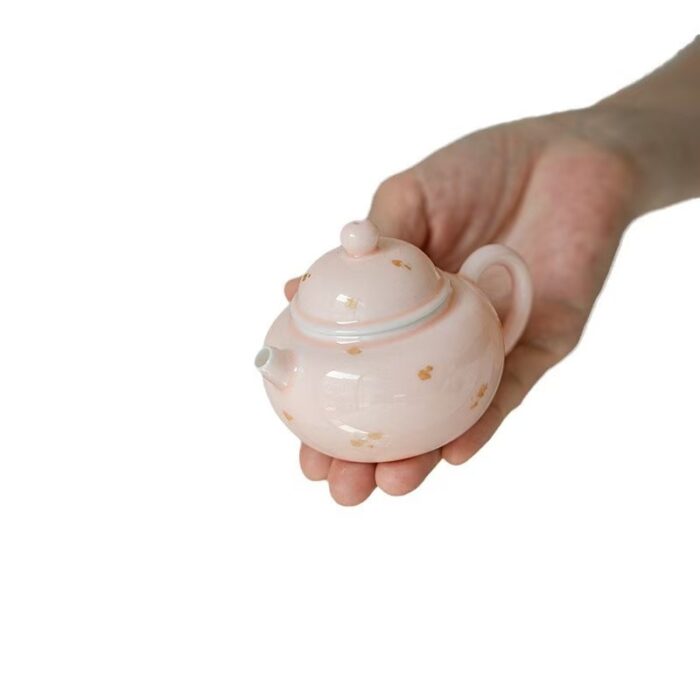 This set of pink sprinkle gold tea sets is the most praised style. Among them is a classic pot, pink in color and dotted with golden spots, which is lively and delicate. The body of the pot is round and lovely, the lid is arched, and the fragrance function is more obvious. The cup is small and smart, and the white inner wall can show the color change of the tea soup. The pouch is fashionable and durable, with a thick inner lining that protects the tea utensils from breakage and is easy to carry when traveling outdoors.