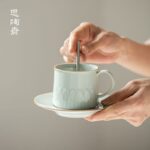 If you are used to drinking drinks from mugs and love Chinese porcelain, then you must try this. This mug is embossed with lotus petal patterns in Chinese aesthetics around the body. The lines are clear and the shape is simple and elegant. The coaster is equipped with a card slot design, so that the cup can be placed smoothly, and can also be used as a snack plate. The handle is round and comfortable to hold.