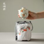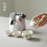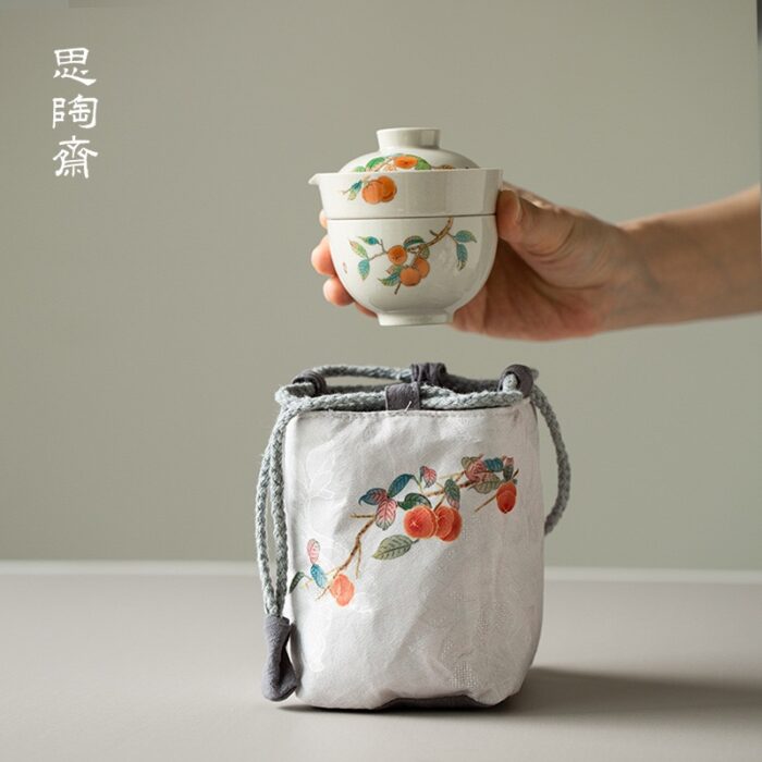 Travel – Portable Tea Set with Persimmon Pattern in Plant Ash Glaze